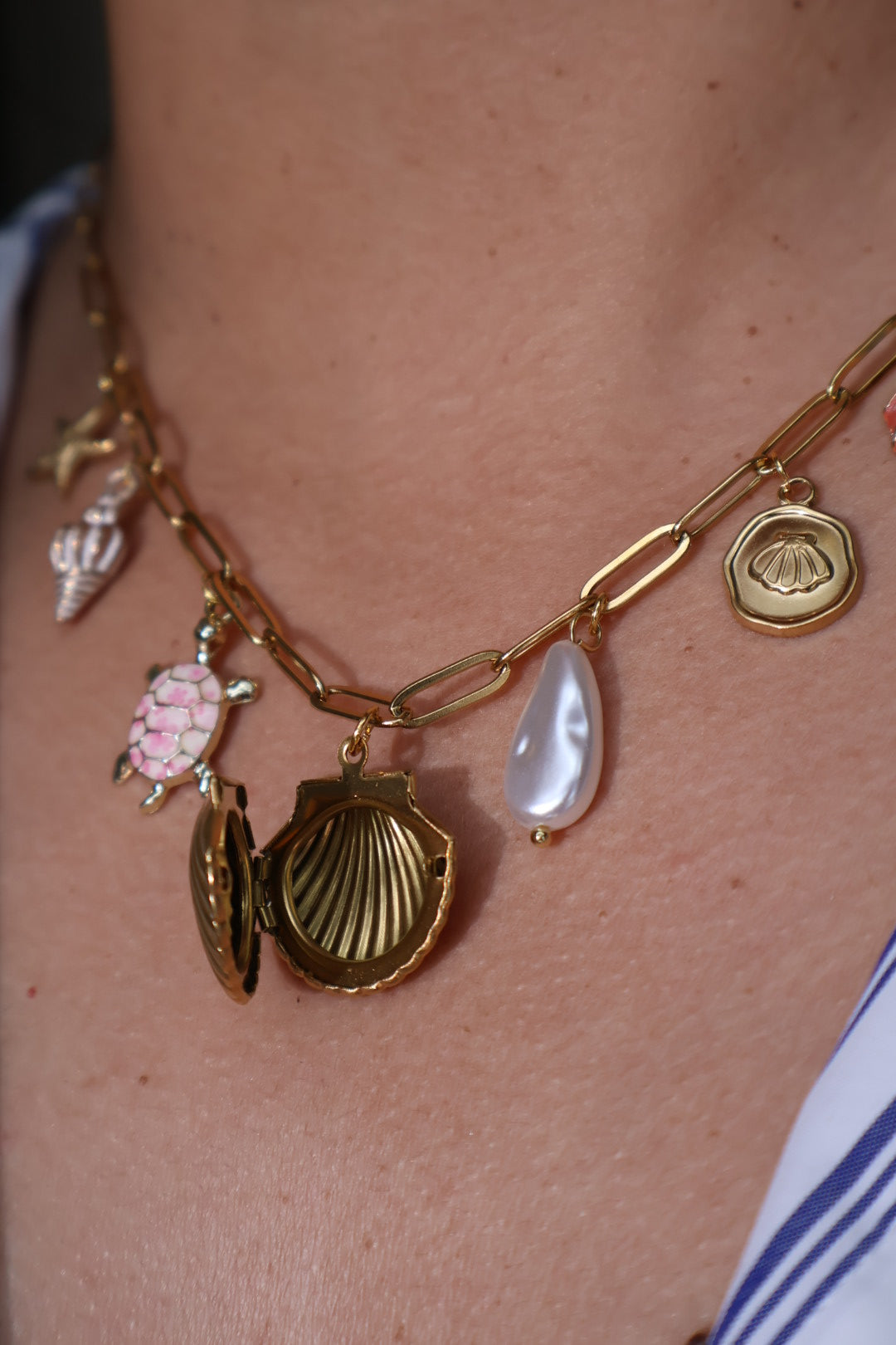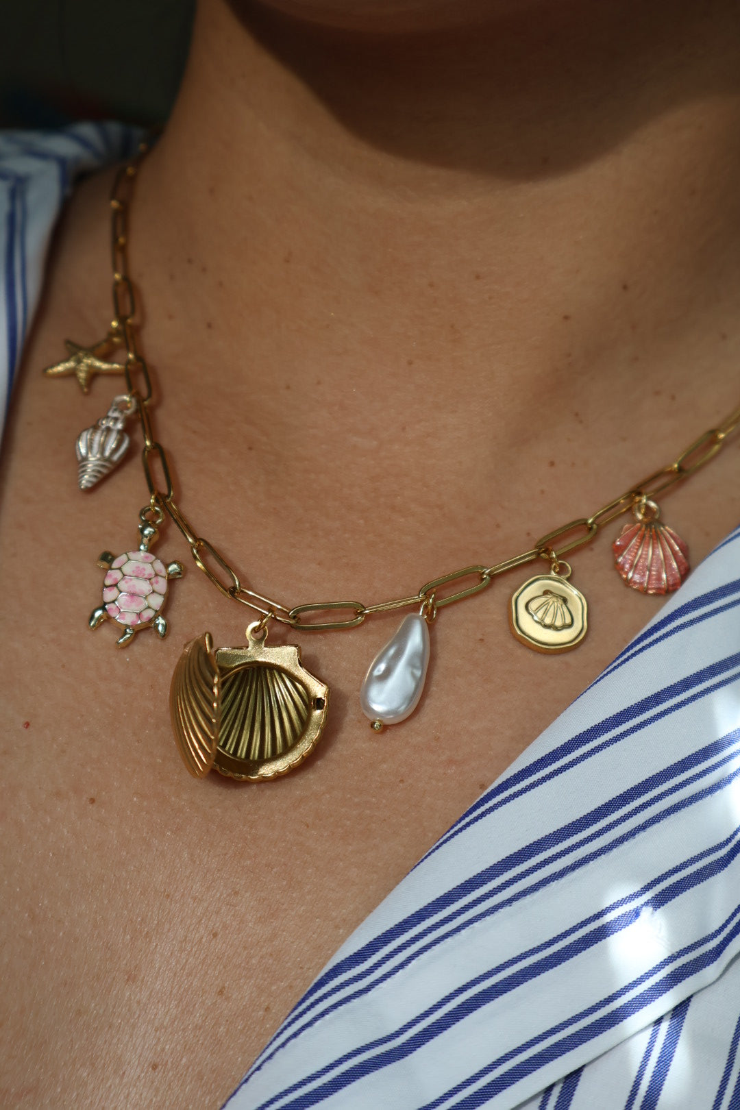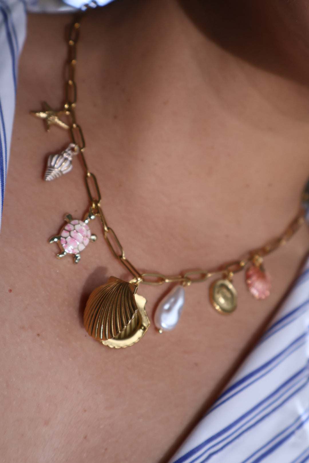Inspired by the Pacific Ocean! The Pacific Treasures Necklace is a unique piece with stainless steel charms that evoke the beauty and mystery of the ocean. Carry a little piece of the Pacific with you and make a style statement with this necklace. A jewel you can't miss!
